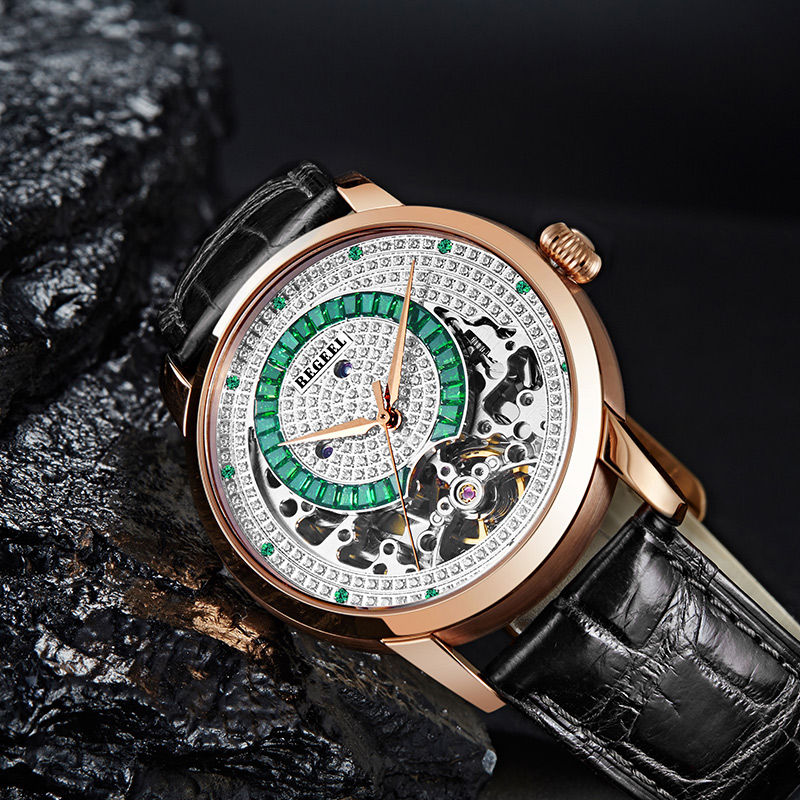 腕表設(shè)計靈感來源于,上海浦東世紀大道《東方之光》(日晷針)造型,日晷令人聯(lián)想到遙遠的歷史,旨在突出時間紀念的主題,設(shè)計師參考東方之光的造型,結(jié)合沙弗萊石等稀有原料,融合到腕表的表盤之中,完成了賓爵沙弗萊石機械腕表的設(shè)計。
