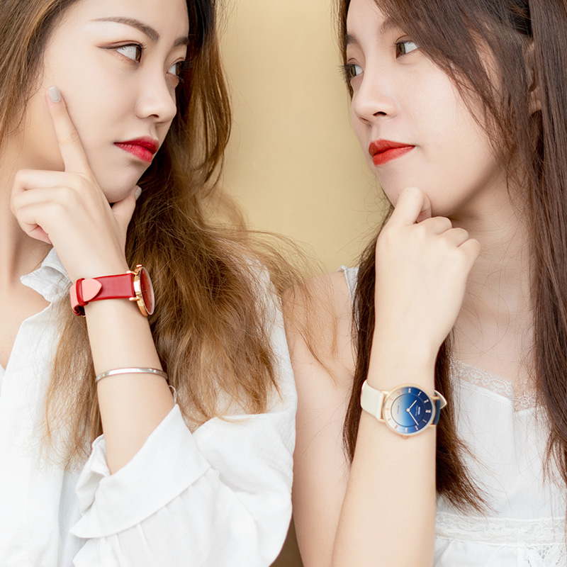 草間綠款:靈感來源于絢麗多彩極光,采用了漸變設計,呈現(xiàn)了取自自然光譜中的一段顏色變化,別樣的工藝美感,流光溢彩。漸情間紫款:以傍晚微暖的晚霞色為靈感,當浪漫的粉與夢幻的紫相結合,彰顯女性的柔美氣質,將美麗的晚霞呈現(xiàn)在腕表之上。