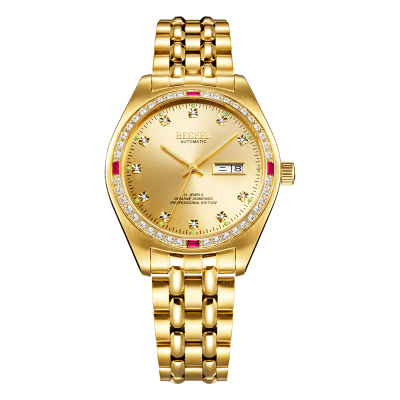 表殼:316L精鋼+電鍍真玫瑰金/電鍍真金
