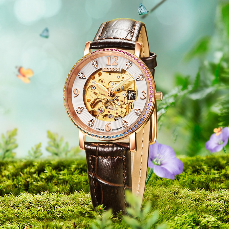 瑞士剪紙以特有的細(xì)致和精巧見長(zhǎng),其傳統(tǒng)可以追溯至三個(gè)世紀(jì)之前的“卡尼維”(Canivet)—— 由花邊剪紙裝飾的小型宗教圣像畫,設(shè)計(jì)師從中汲取靈感,不拘泥于傳統(tǒng)鏤空表的模式,也沒有復(fù)雜的雕刻花紋,取而代之的是摩登現(xiàn)代的造型和高新技術(shù)的運(yùn)用,在充分詮釋曲線鏤空之美的圓表盤之下藏著堅(jiān)毅獨(dú)立的機(jī)械機(jī)芯,傳遞出兼具柔美與堅(jiān)毅的力量,自信展示真我的天性魅力。