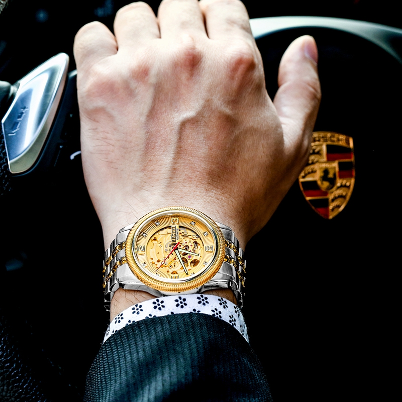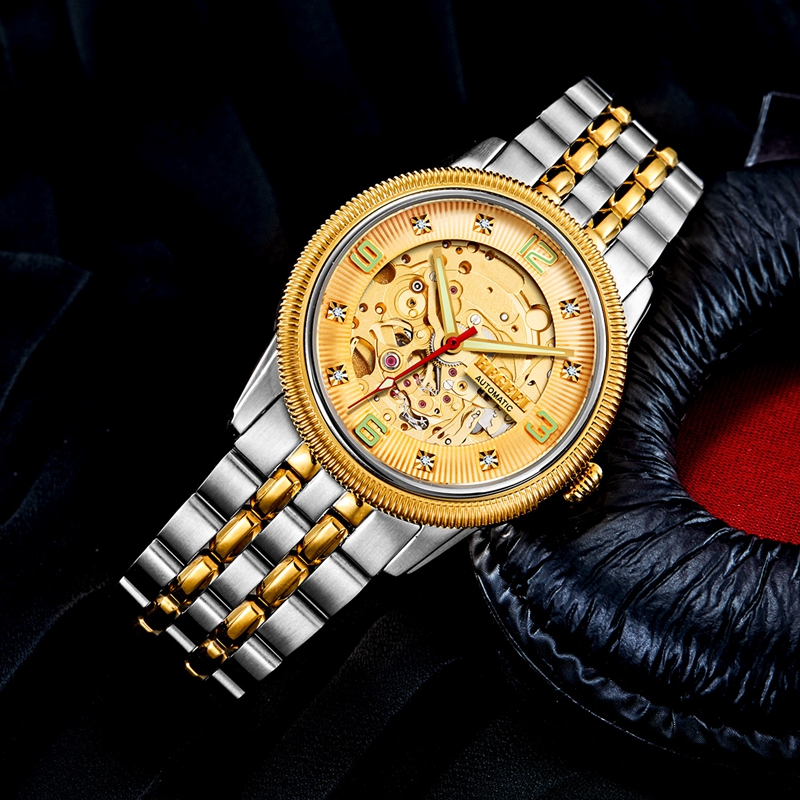 字面:8顆真鉆石,鏤空放射式紋理字面,真釘logo,3、6、9、12為真釘刻度夜光