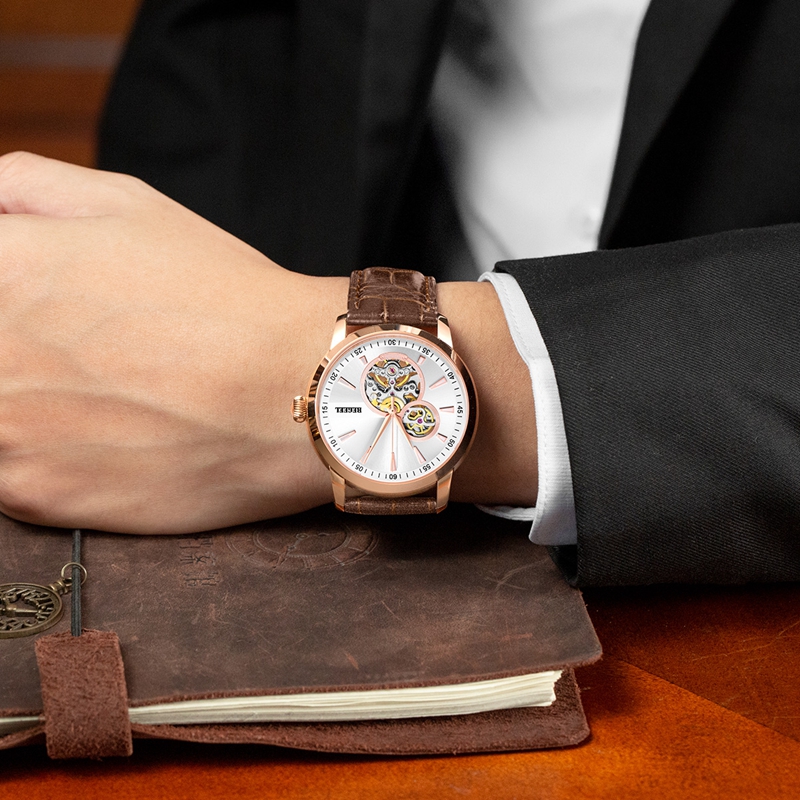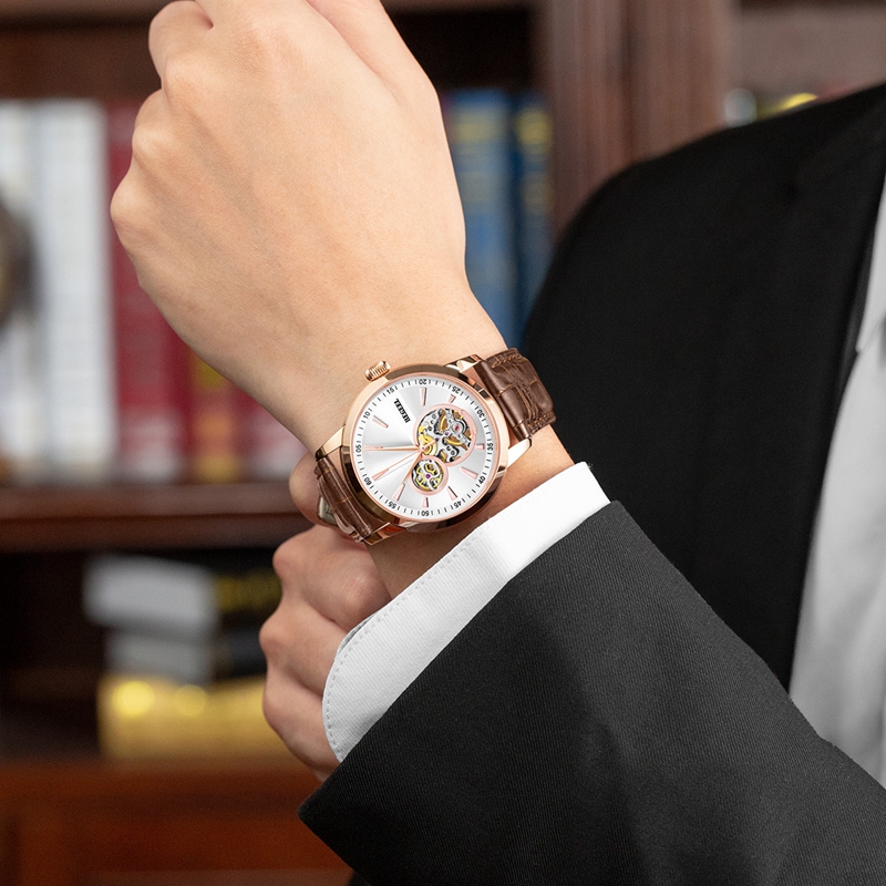 從數字8萃取靈感,在同一表盤上,設于6時位和9時位的鏤空飛輪設計內盤繾綣擁抱,形成數字“8”造型,將詩意前衛的美學理念創新呈現,交繞之態如同一條四通八達的道路暢通無阻,寓意事業蓬勃發展。數字8也包含“∞”(無限)的意義,象征開闊的思路與無畏探索、勇闖高峰的堅毅信念。