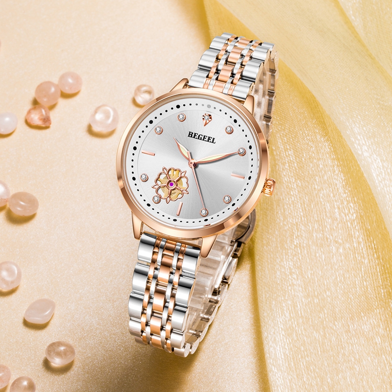 表殼:金屬+不銹鋼底蓋+電鍍玫瑰金