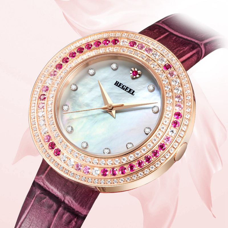 表殼:316L鋼+電鍍玫瑰金,綠圈口:鑲3排水晶鉆 ,彩鉆31顆,白鉆146顆,共177顆。紅圈口: 鑲3排水晶鉆,彩鉆35顆,白鉆142顆,共177顆