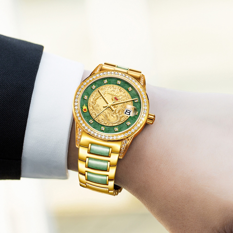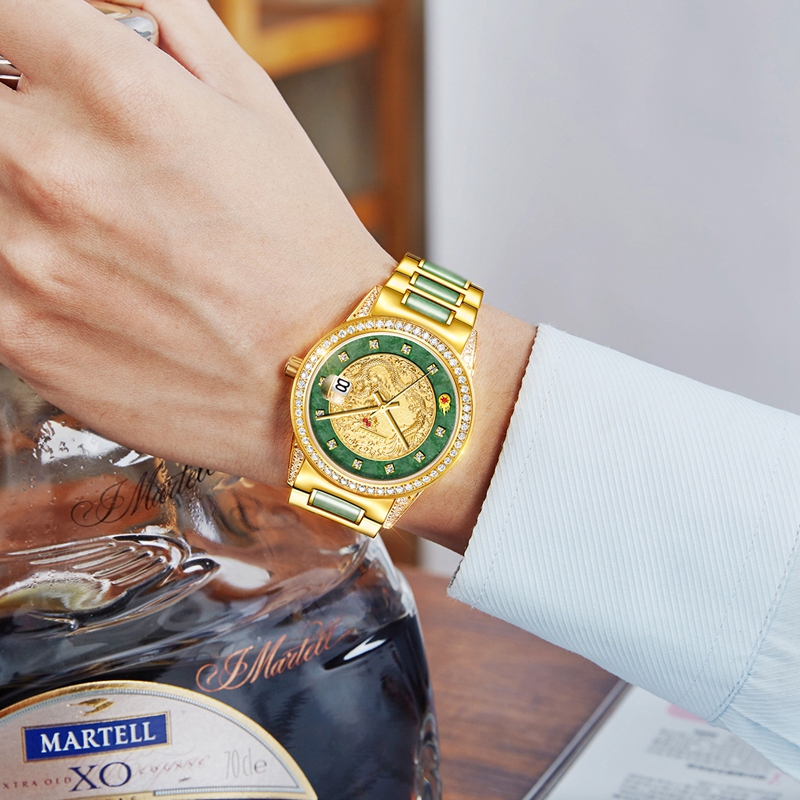 表帶:316L精鋼+電鍍真金+6顆真翡翠 (約0.085ct)