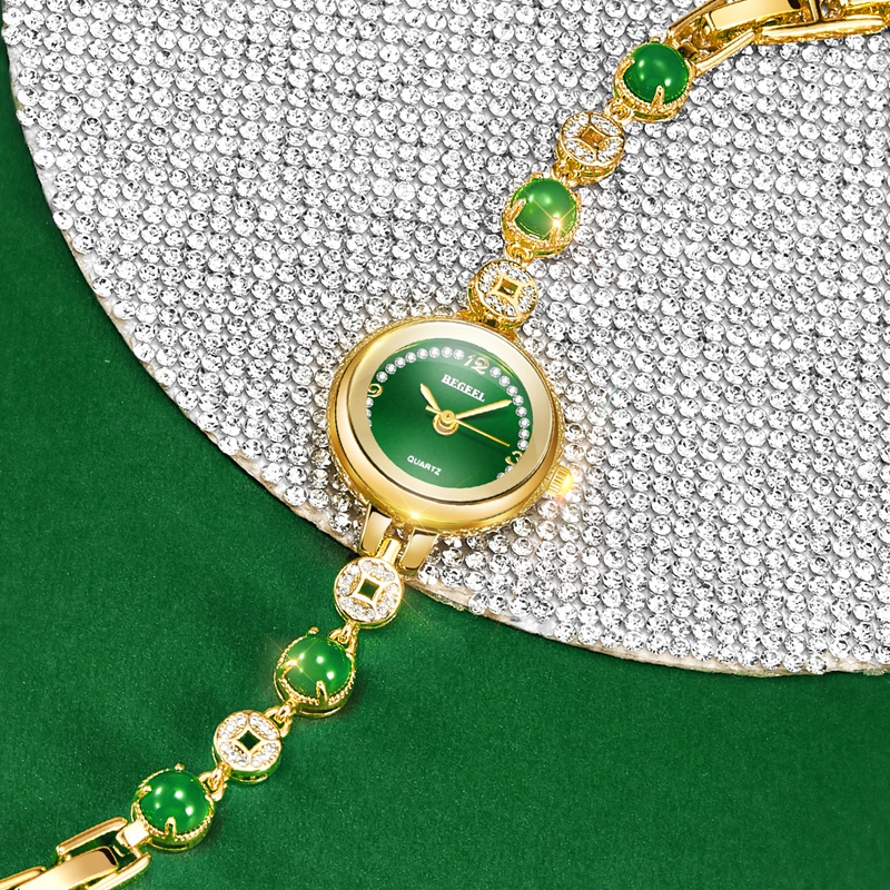 字面:翠綠面,鑲32顆晶鉆,3針設(shè)計(jì)