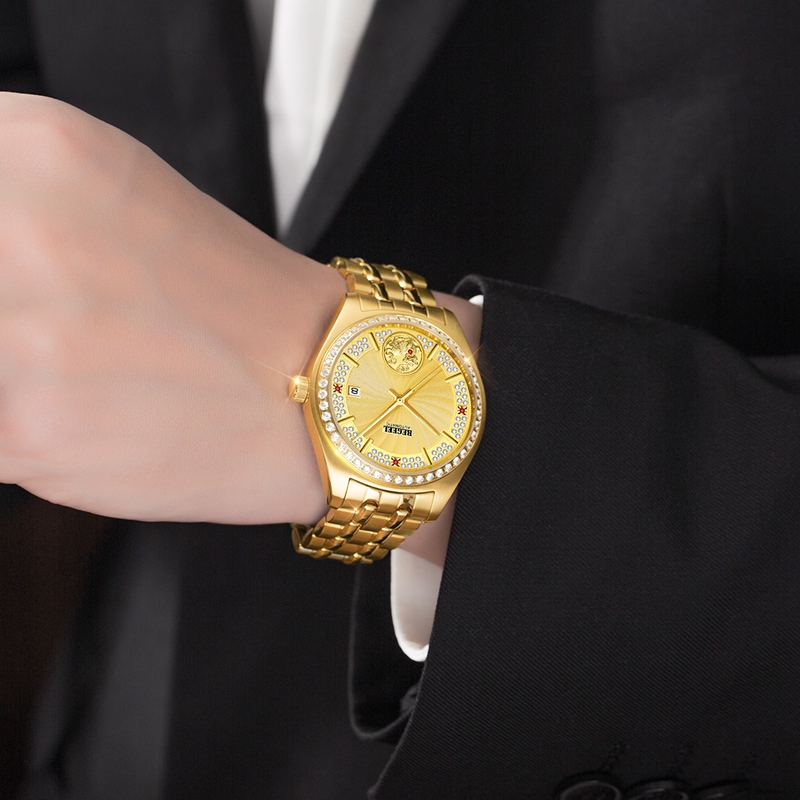 表殼:白圈口:316L精鋼電鍍真金,圈口鑲嵌46晶鉆
