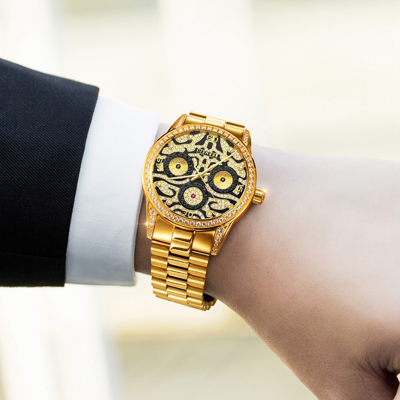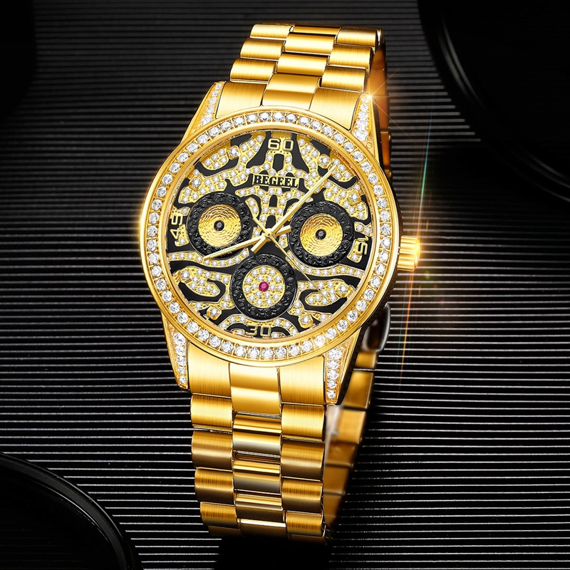 表殼:316L精鋼+電鍍真金 (圈口鑲55水晶鉆,耳位鑲20顆晶鉆)