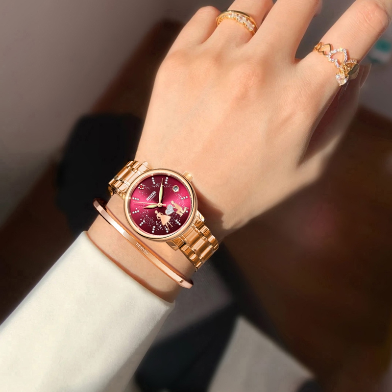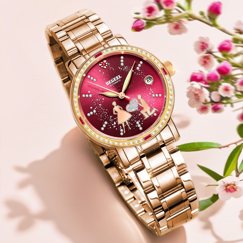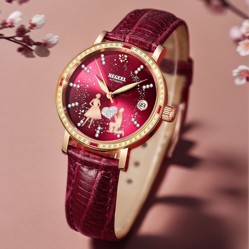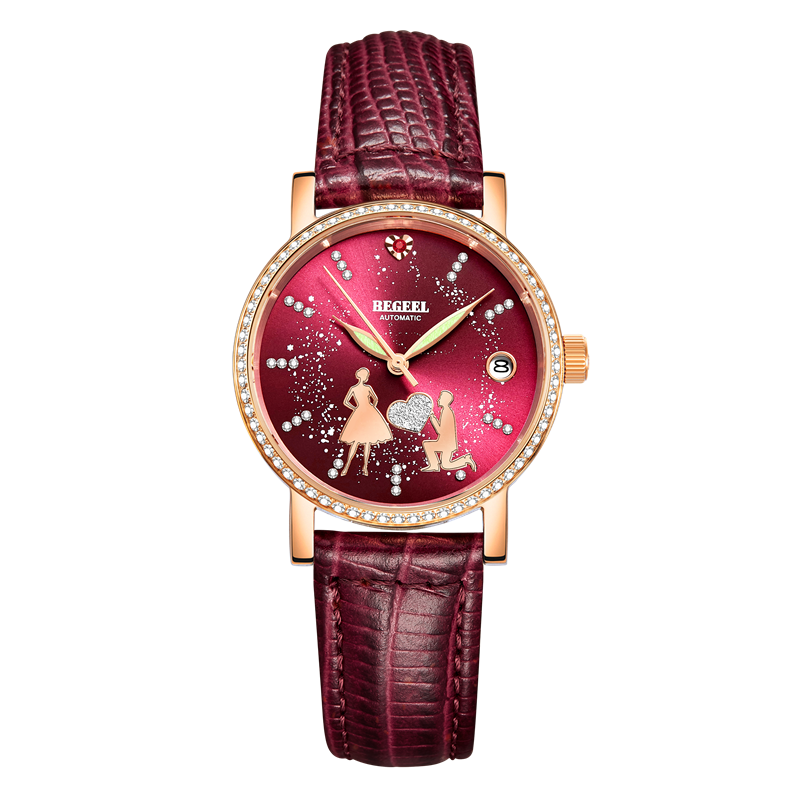 字面:酒紅面,1顆真紅寶石,27顆合成藍(lán)寶石,晶鉆粉心形,強(qiáng)夜光針