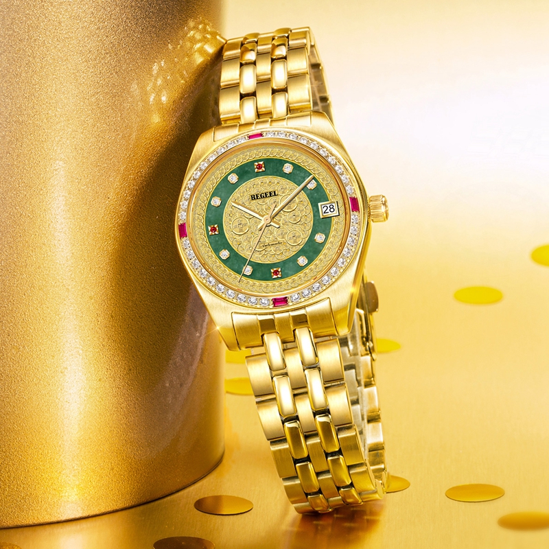 字面:鑲8顆真鉆,3顆真紅寶石,金幣紋+貝殼翡翠紋