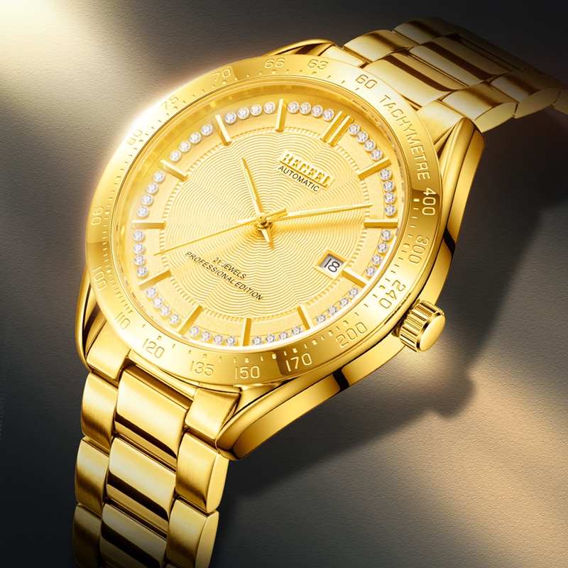 表殼:316L精鋼,電鍍金,光圈/金寶鼎圈口鑲約80顆晶鉆/福星圈口鑲約60顆晶鉆